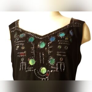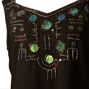 Kaelyn Max- Black Tank-Top With Sequin On Front & Around The V-Neck, Size 10