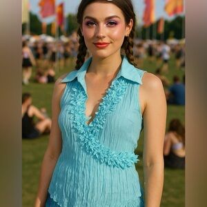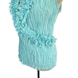 Kaelyn Max Blue Sleeveless accordion ruffle front Blouse Size XL