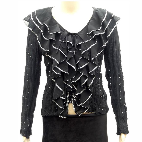 Kaelyn-Max black long sleeve ruffle sequin boho top. 100% Polyester. Arm length 23.5". Worn only once, in perfect condition!