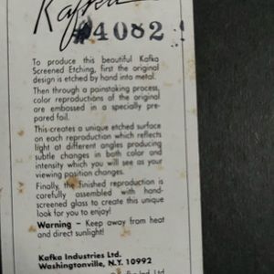 Kafka Industries Limited Screened Etching# 4082. Size 5 X 7 Inches Framed. Floral Design Is Etched By Hand Into Metal Then Color Reproduction Is Embossed In A Specially Prepared Foil.