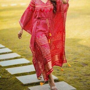 Work :- Printed Designer Kaftan with Fancy Latkan And Fumka With Lace work