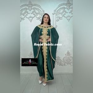 Kaftan, Royal Kaftan Fancy Green With Golden Beads Embroidery 💚