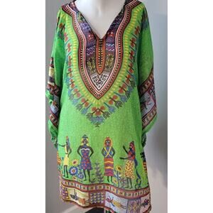 Kaftan Womans Top Green Boho Beach Made In India. Nice and lightweight. Cool for the summer. Use as swim suit cover or just wear to the beach with shorts. Great for lounging. Fits good for anyone up to Sz. L