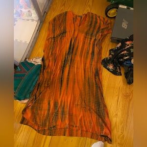 Vibrant orange and black tie-dye dress. Perfect for casual outings.