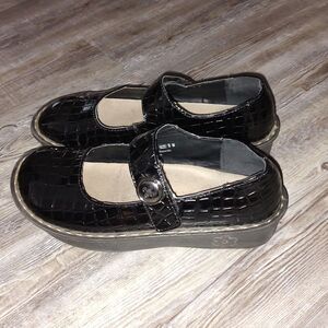 Kagen Jane Black Croc Embossed Mary Jane style professional nursing shoe sz 9