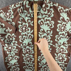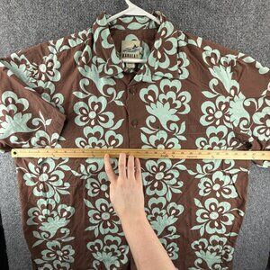 Kahala Floral Blue Brown 2XL Cotton Pocket Short Sleeve Hawaiian Button Up Shirt