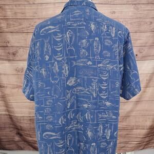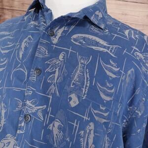 Kahala Hawaiian Shirt Mens XL Blue Fish Print Button Up Aloha Rayon Blend Beach