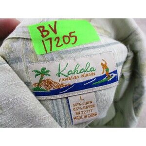 Up for sale is a - Kahala Shirt Mens Large L Beige Floral Linen Rayon Hawaiian Casual Button Up