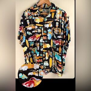 Kahala X John Severson Shirt Men's Large Hawaiian Button Up Woody Wagon Shirt