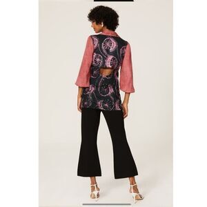 beautiful designer top that can easily be dressed up or down! cute cut out in back makes it easy daytime to night outfit too