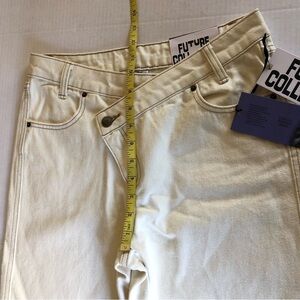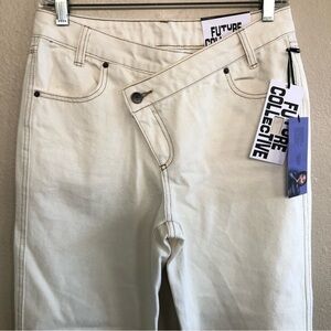 Upgrade your jeans collection with something unique and stylish with these High-Rise Overlap Waist Tapered Leg Jeans from Future Collective With Kahlana Barfield Brown™. Made from a cotton-recycled cotton blend, these jeans are straight with a casual fit and a 28-inch inseam. The overlapping, asymmetrical fly button and zipper closure takes these jeans to the next level.