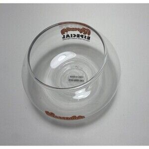 This Kahlua Especial Fishbowl Glass Barware Cocktail has a unique design that catches the eye. Made for Kahlua enthusiasts, this glassware is perfect for serving cocktails. The clear glass and intricate design make it a great addition to any collection. It is a unique piece of advertising memorabilia that will surely impress. The glass is an original and has not been modified, making it a great conversation starter. The country of manufacture is unknown, but the quality of the glassware is unmistakable.