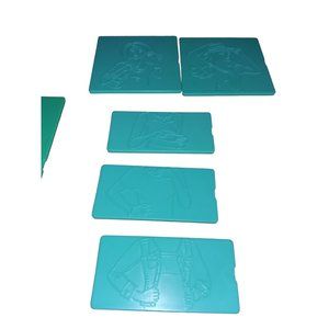 Pre-owned Kahootz fashion plates doll clothes art set in good condition. Set comes with case, fashion plates and coloring pencils. Please see all photos for sets general pre-owned condition and measurements.
