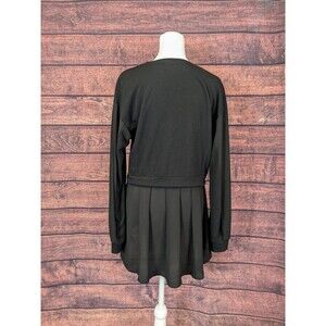 Kai Aakmann Pleated Black Unisex Chiffon Shirt Dress Twotone Sleeves Size Small