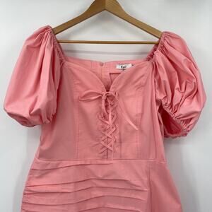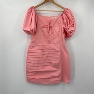 Kai Collective Babita Dress Puff Sleeve Lacing Neckline Mini Pink NEW Womens XXL