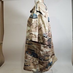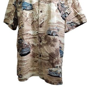 Kai Hawaii Hawaiian Shirt Woodie Wagon Car Beach Palm Tree 2XL XXL Brown Button