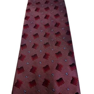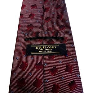Kai Long Hand Made Red Purple Geometric Woven Short Silk Tie