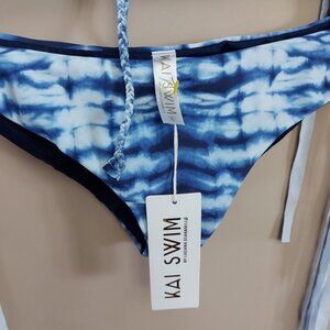 Kai Swim tiedye bikini with fringw sides and criss-cross straps