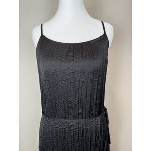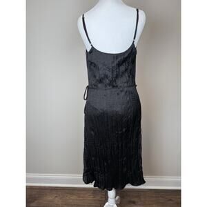 Kaia Pleated Midi Slip Dress Belted Black Sz Small