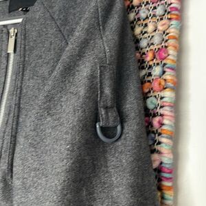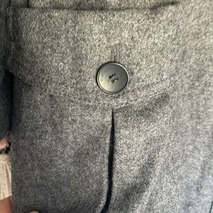 This is a beautiful jacket. I love the tie detail in the back and it also can be adjusted to fit more tightly around the waist from the inside of jacket. Beautiful grey color. Extra buttons included.