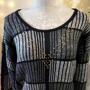 Kaii NWT Contemporary Geometric Studded Exposed Back Grandpa Sweater Women's M