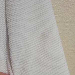 -There’s a small spot on the left sleeve, but it can be bleached out.