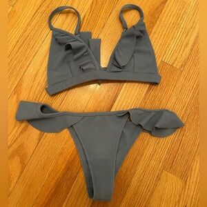 The most perfect bikini! Worn once but in perfect condition. Size Medium top Medium Bottom. Took pictures with and without flash but the true color is exactly like the model.