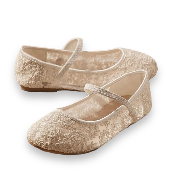 Kailee P. Pas Lace Crochet Mary Jane Flower Girl Flats Ivory Youth 1 New NIB