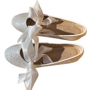 Kailee P Silver Sparkly Rhinestone Ballerina Flats Satin Bow Size 10/11 Women