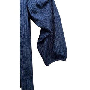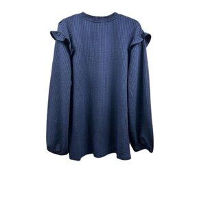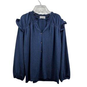 Kaileigh Blouse Womens Large Navy Ruffle Faux Button Long Sleeve Textured Boho