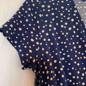 Kaileigh Blue Polka Dot Print Short Sleeve V Neck Wrap tie waist Knee Length Dress Size Small