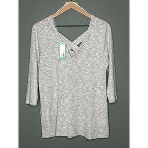 Kaileigh Luciana Back Detail Knit Top Light Gray Soft 3/4 Sleeve V-Neck NWT