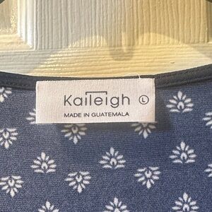 Chic navy blouse with a subtle pattern. Features a V-neck and long sleeves. Perfect for any occasion.
