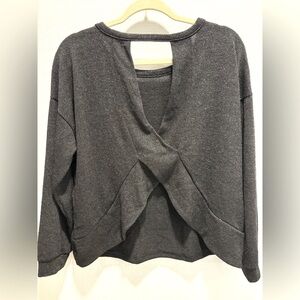 - Black with silver shimmer, open back, long sleeves