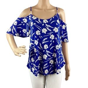 Kaileigh Valette Back Detail Knit Top Size S Blue Floral