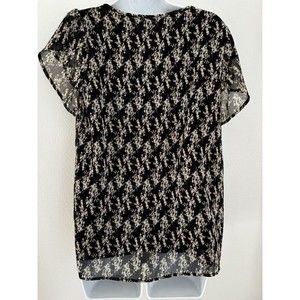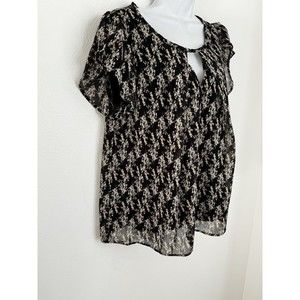 This Kaileigh blouse is a versatile piece that can be dressed up or down for any occasion. The black and tan floral pattern adds a pop of color to any outfit, while the keyhole neckline and flutter sleeves add a feminine touch. The blouse is made with a lightweight polyester fully lined making it perfect for all seasons. It has a relaxed fit and is machine washable for easy care. Whether you're heading to the office or a casual outing, this blouse is a must-have in your wardrobe. In excellent almost like new condition. Item has been washed. Hung dry sanitized and packaged. Measurements are in pictures. I appreciate your business and strive for a five star rating. Please feel free to message me with questions.