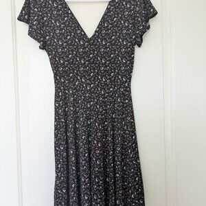 Kaileigh womens black floral fit and flare dress short sleeve size XS