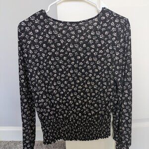 Kaileigh womens black floral smocked waist long sleeve blouse size S
