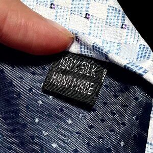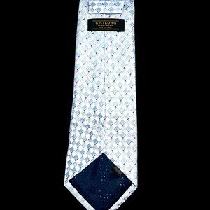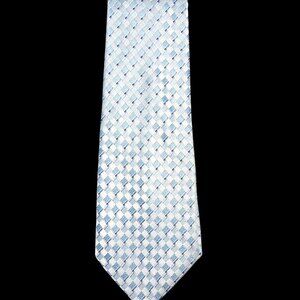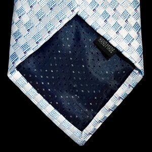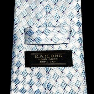 Kailong White & Light Blue Checkered Pattern 100% Silk Tie