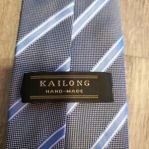 Kailong hand made mens striped tie does not have materials are care tag Measurements are approximate length- 53 inches