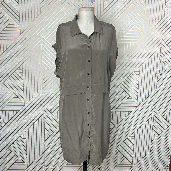 Kain Label Tan Beige Silk Short Sleeve Shirtdress Size US 8