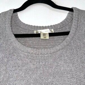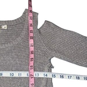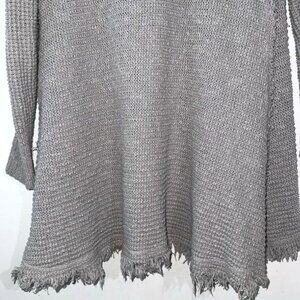 Kaisely Gray Cold-Shoulder Knit Sweater Tunic XS With Frayed Hem
