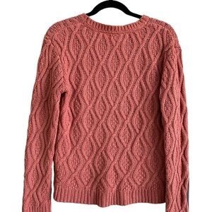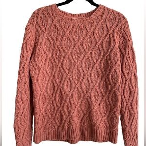 Kaisley Cable Knit Wool Blend Crewneck Rose Salmon Color Sweater Size L
