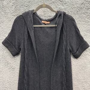 Kaisley Women's Small Gray Knit Short Sleeve Open Front Cardigan Hoodie Comfort