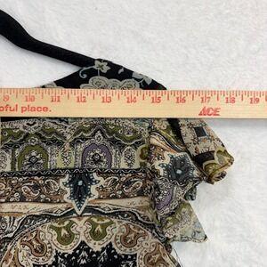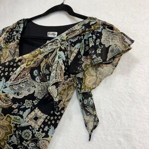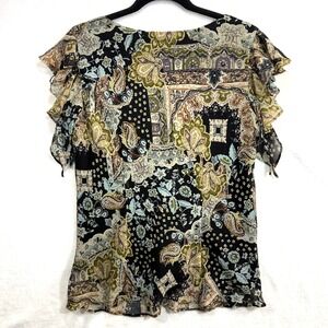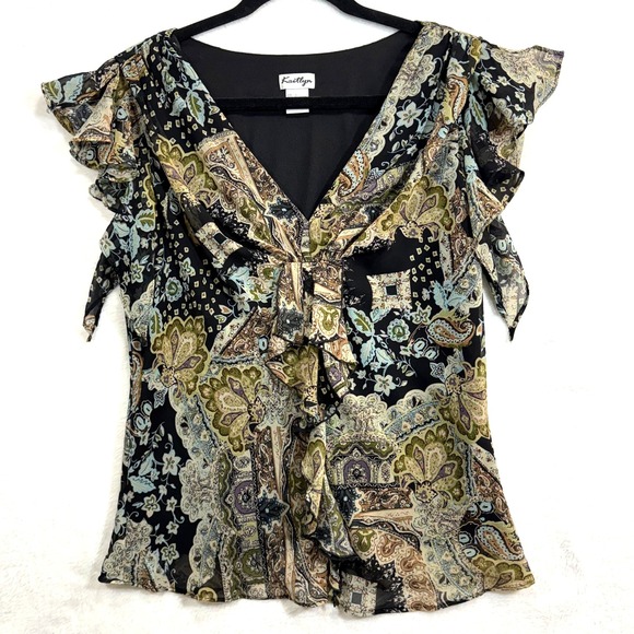 Kaitlyn 1X Paisley Print Top Tie Front Flutter Sleeve Retro Abstract Funky Y2K