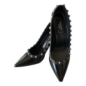 Be bold and beautiful in these sexy, classy, edgy, designer-look-alike black studded stiletto 4" pumps by Kaitlyn Pan.