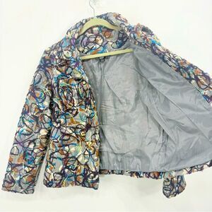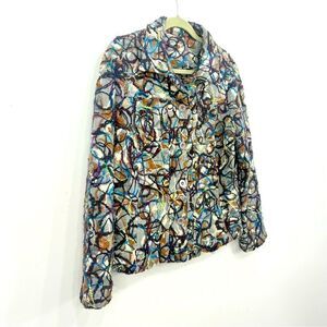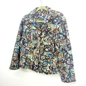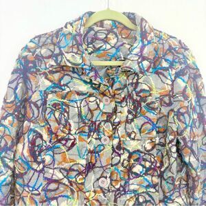 KakTus Gray Colorful All Over Yarn Embellished Button Front Blazer Jacket