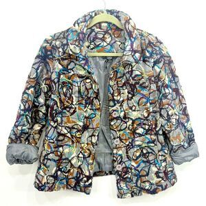 KakTus Gray Colorful All Over Yarn Embellished Button Front Blazer Jacket