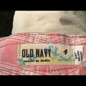 The fabric tag is gone. It's probably a cotton, spandex mix. It's similar material to another pair I have and that's what material they are.