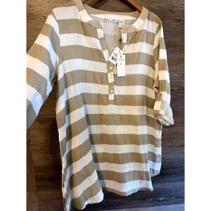 Kaktus Beach Cover up Size XL Stripped Gauze Tan White Swimwear Vacation NEW